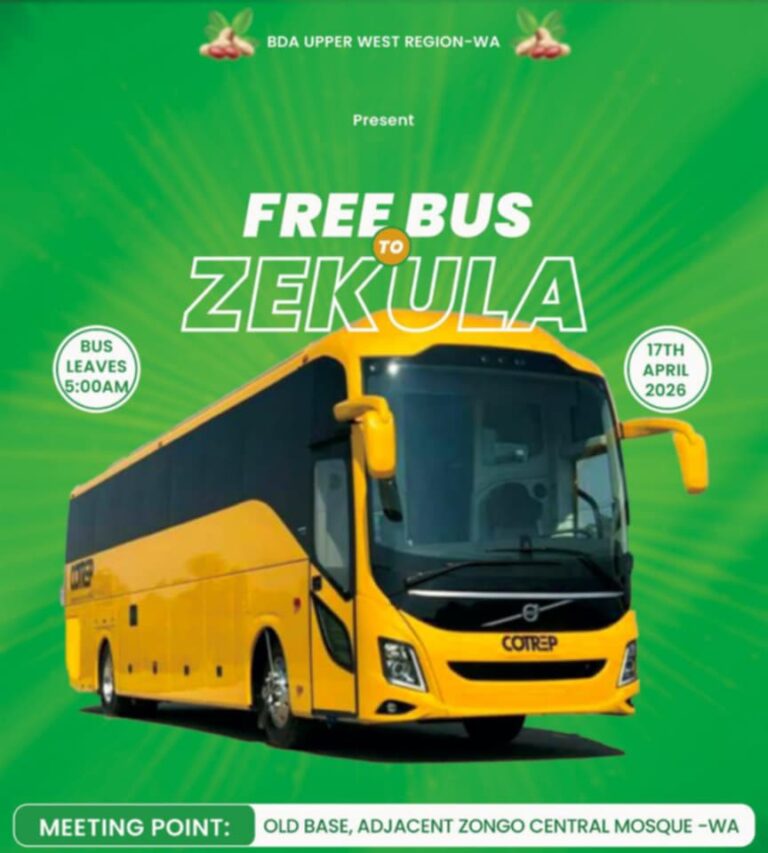 The Upper West chapter of Bissa Development Association has announced free bus transportation for community members wishing to attend Zekula…
